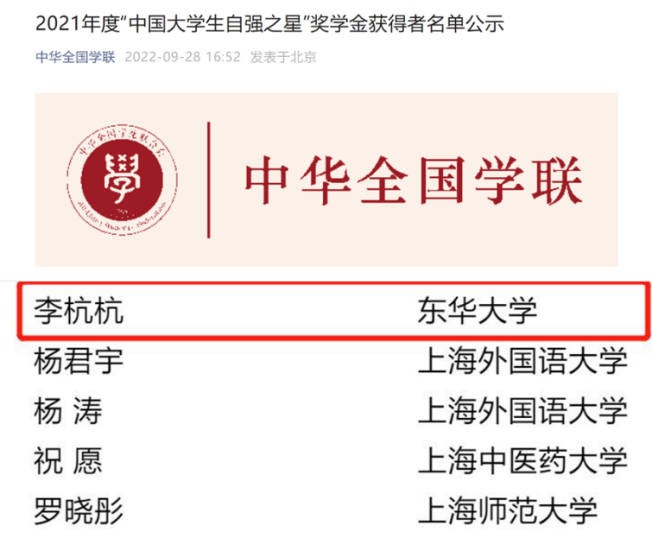 近日,由共青团中央、全国学联指导,中国青年报社、新东方教育科技集团、中国青年创业就业基金会联合举办的2021年度“中国大学生自强之星”评选结果揭晓。经各区校推荐、省级初评、全国评审等环节,威廉希尔官网李杭杭同学荣获“中国大学生自强之星”荣誉称号。
