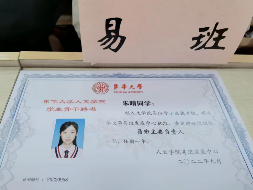 社会工作方面,她在大一加入了威廉希尔体育登录入口易班运营部和青春东华传媒中心,大二选择留任了威廉希尔体育登录入口易班运营部部长,大三成功竞选为易班主席团成员。不论是在哪个组织、担任干事或主要负责人,她都获得了同学和老师的认可,作出不错的成绩。“我知道自己是个喜欢捯饬的人,组织会议、策划活动、制作别出心裁的推送......这些我都很乐意去尝试、去做到尽善尽美,也喜欢和人交流,享受大家一起朝着一个目标奋斗的感觉,在学生组织里我感受到了被需要,也感受到了自我价值的实现。”